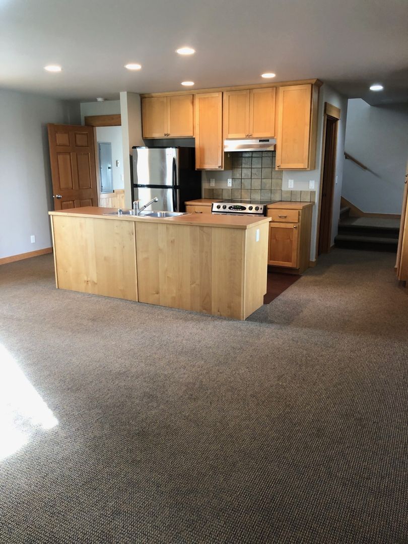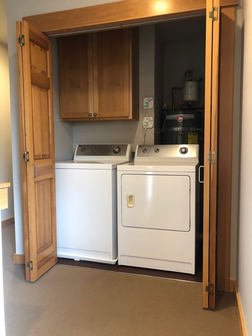 Sweet townhouse unit perched above greenbelt ravine in the heart of Winslow. Walk up from private entry to open living space surrounded by windows, galley kitchen, powder room, ample storage, and covered deck. Custom details, fir woodwork, loads of closets, carport parking space plus heated storage. Two bedrooms and full bath with laundry on second floor. A very special home in town. Unit number is 272.