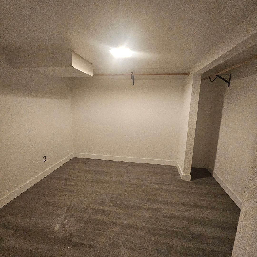 The downstairs bedroom features a walk-in closet, providing added storage and flexibility. Upstairs, two bedrooms include sliding glass doors that open directly to the backyard deck, filling the home with natural light and creating an easy indoor-outdoor connection.