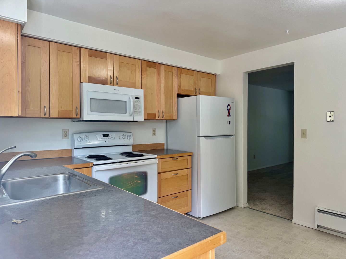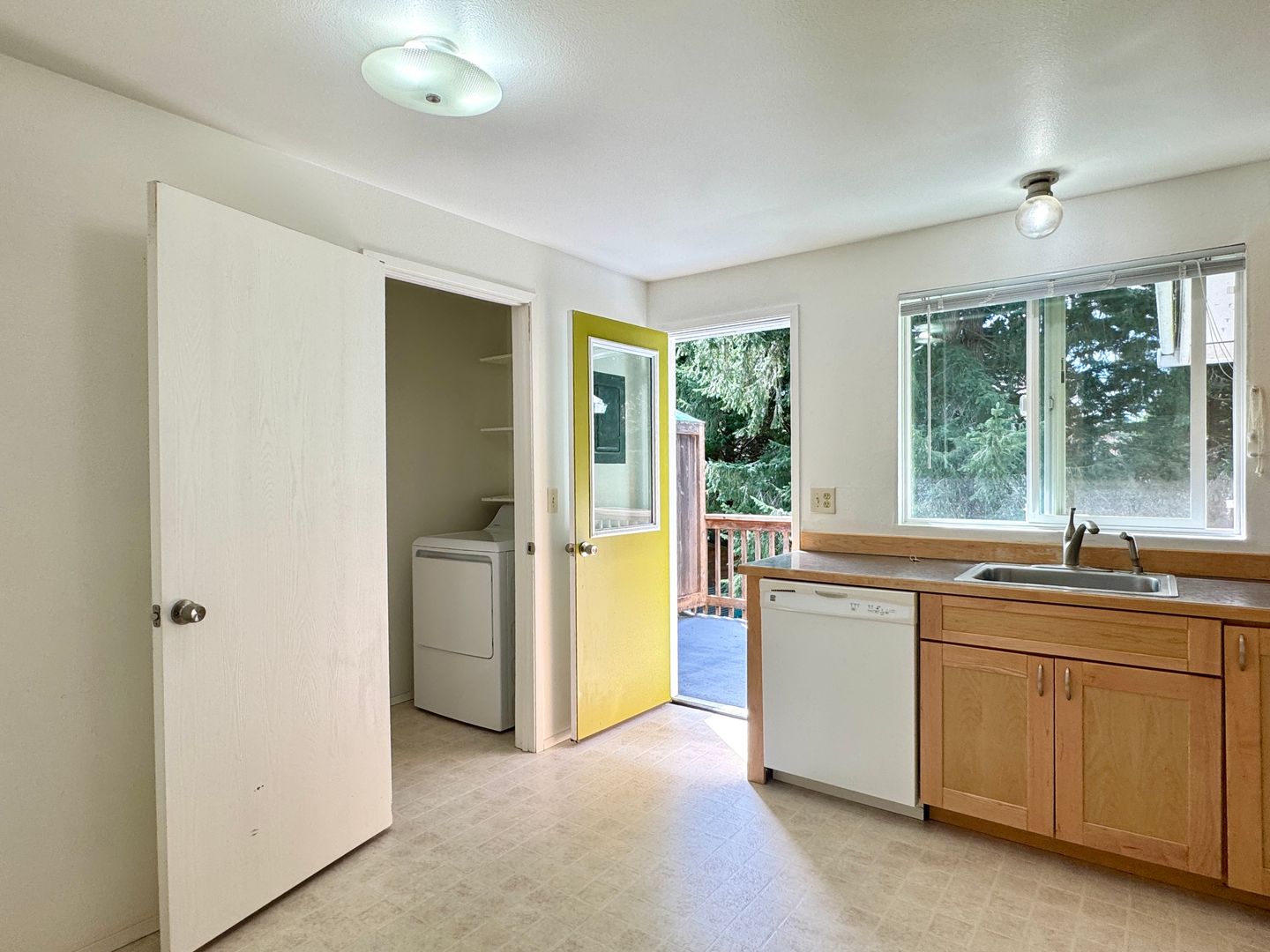 Bright and sunny top-floor corner apartment on Bainbridge Island with two generous bedrooms and one full bath. This open layout features a large kitchen that opens to a private upstairs deck, new carpet throughout, and an included washer/dryer. Walk to town and the Seattle ferry from this small four-unit building. Included parking for two cars and access to a huge shared yard provide added convenience and outdoor space. Water, sewer and trash included. Pets are welcome with approval and additional deposit.