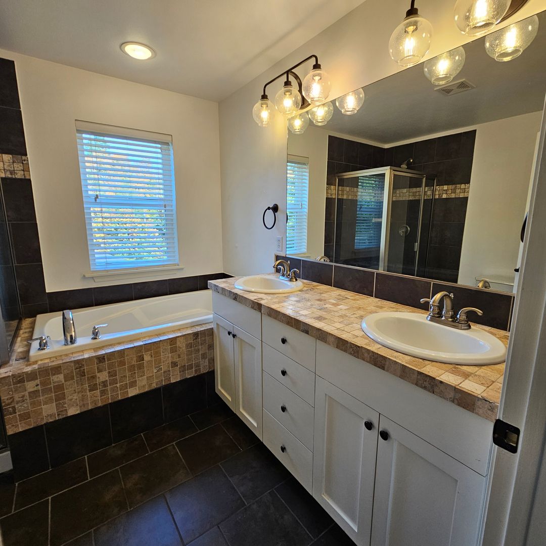 Upstairs, the primary suite offers a private ensuite bath and walk-in closet, accompanied by a second bedroom and full bath.