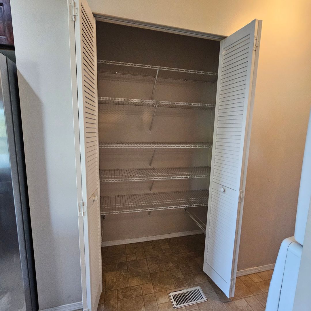 Inside, the home features a heat pump for efficient central heating and cooling, soft, comfortable carpeting, and multiple bathrooms for added convenience. The kitchen is equipped with stainless steel appliances, a dishwasher, and a pantry, making meal prep and storage easy.